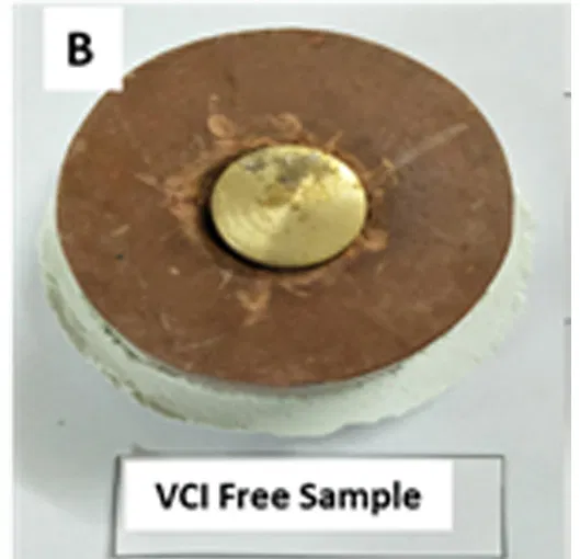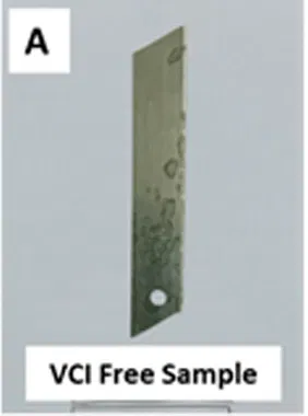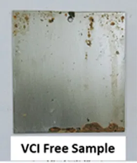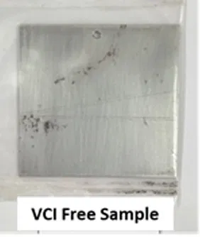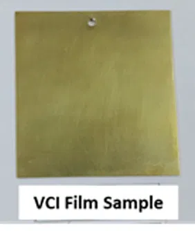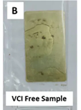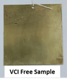 The VCI pouches showed no corrosion on MS blade & Brass panels, unlike the Control sample. Which was an indication of the effectiveness of VCI molecules under contact testing conditions(fig.4).