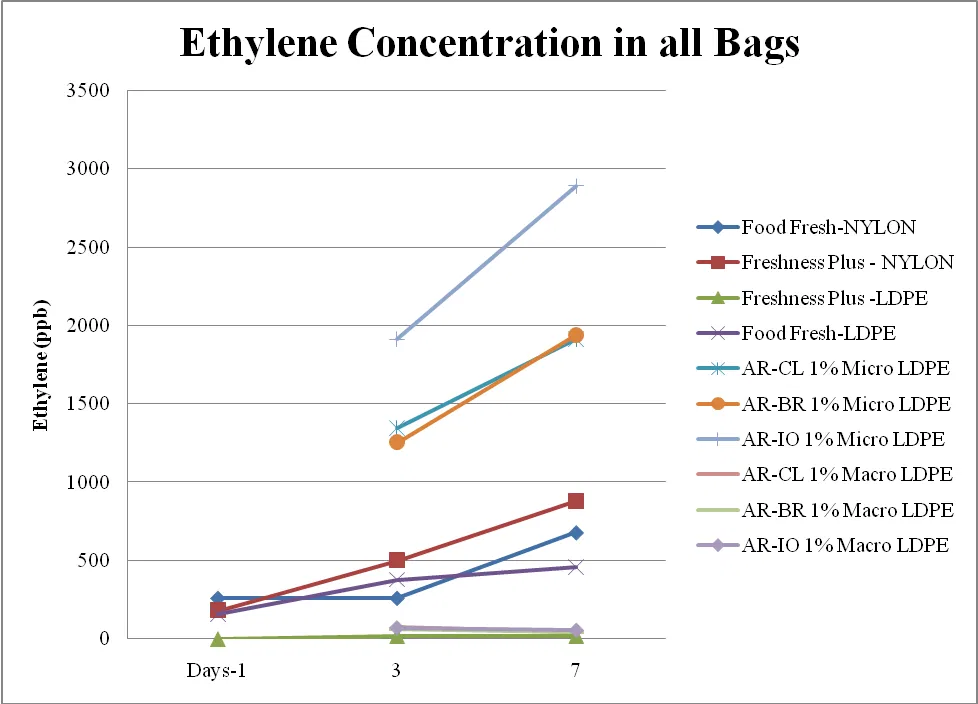 Fig 1: Ethylene Concentration in all Bags